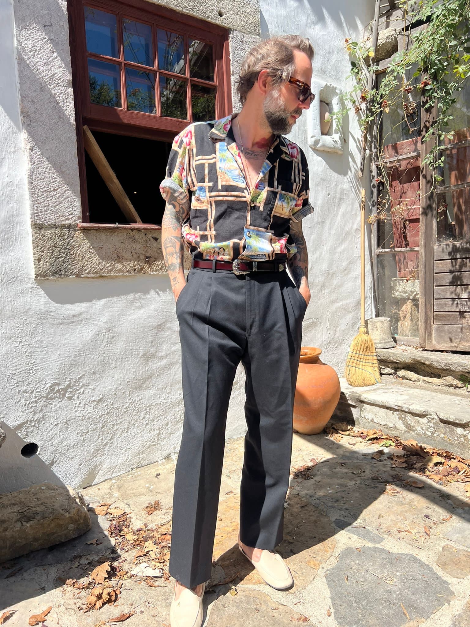 Superbe pantalon à deux pinces taille haute fabriqué au Portugal.