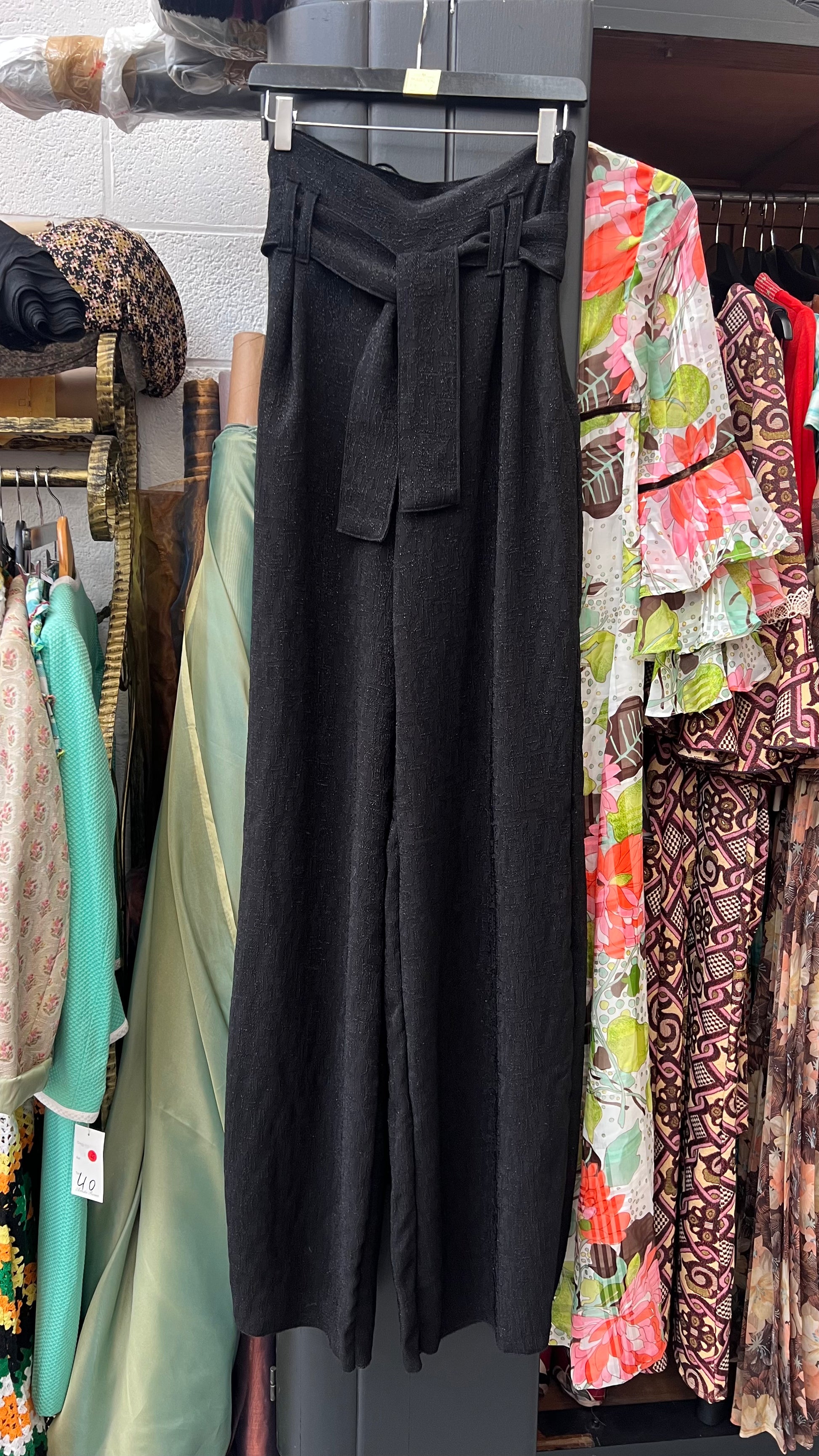 Pantalon taille très haute, jambes larges ceinturé à la taille, zip sur le coté.