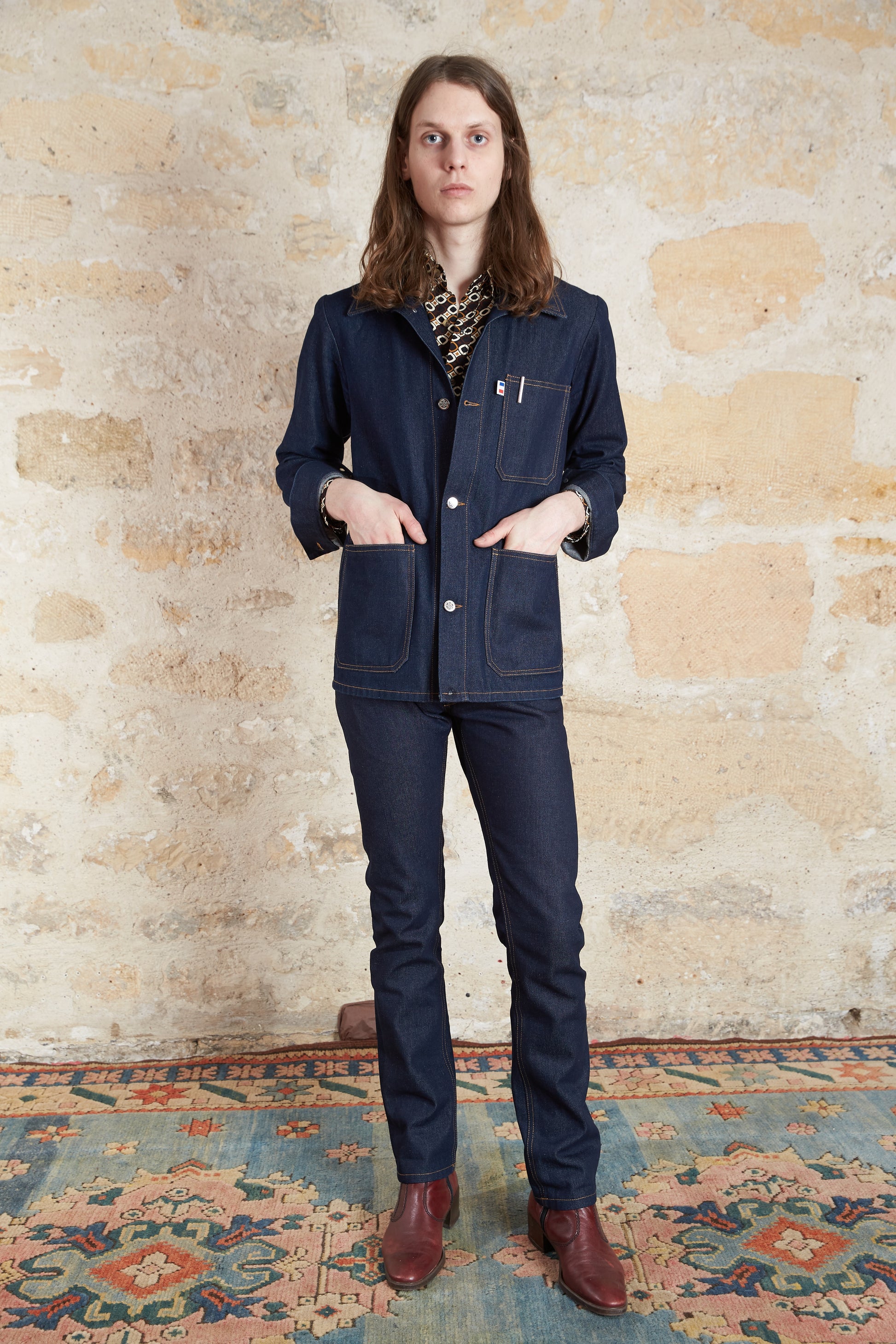 Veste inspirée par la coupe du fameux "bleu de travail" que nous avons réalisé en jeans brut.